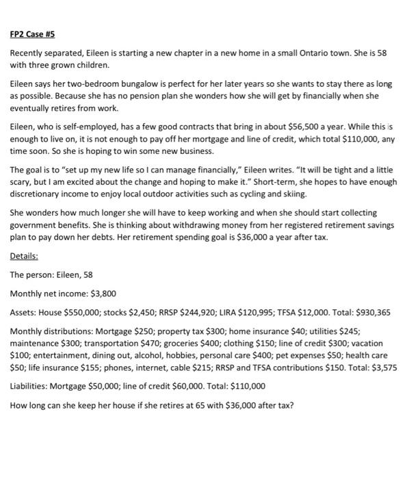 Fp2 Case 5 Recently Separated Eileen Is Starting A Chegg Com